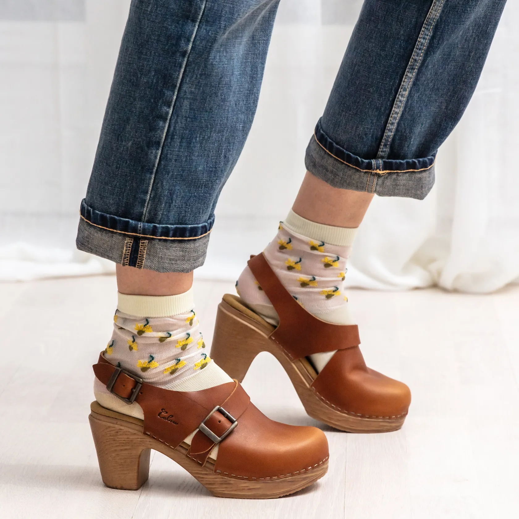 - Flexible sole with woodlike effect
