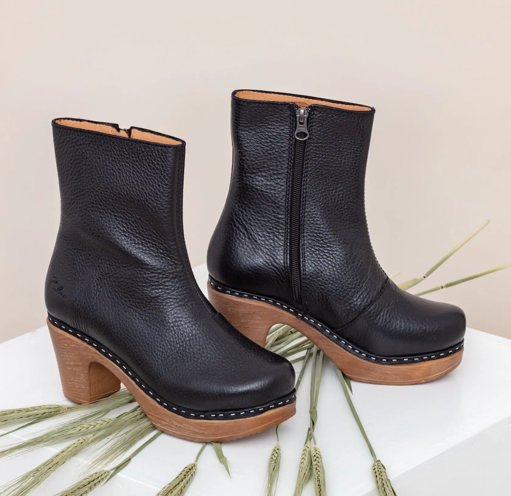 Our clogs feature a cushioned polyurethane sole which makes them lighter and more comfortable than a traditional wooden-soled clog. The Calou sole flexes as you walk and absorbs shock. Our clogs are so comfortable in fact, that you can happily wear them all day long, even if you work on your feet!