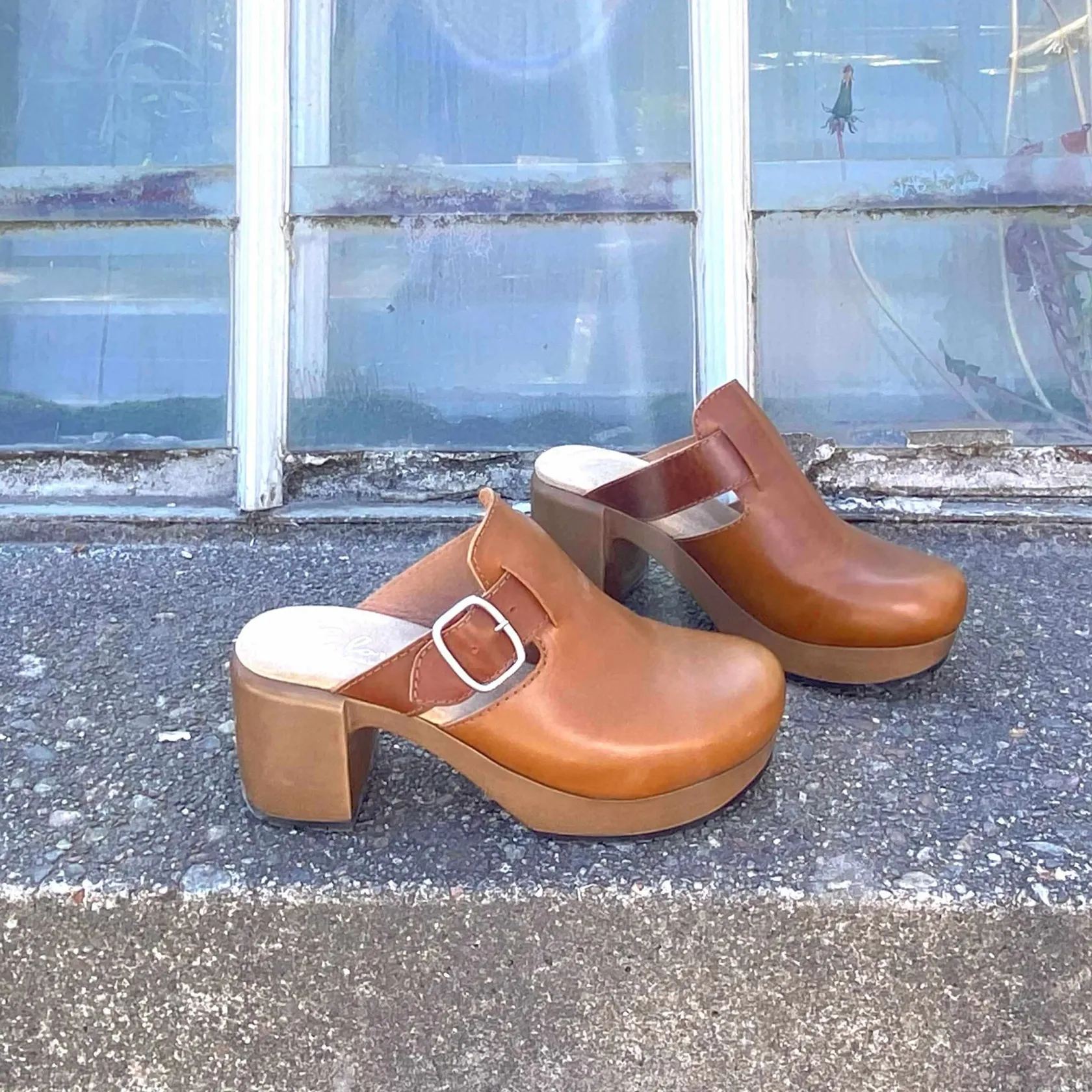 Tuva is a slip-on clog with a signature buckle detail. The block heel and chunky platform sole offer extra height and stability, while the cushioned sole makes Tuva a great choice for long days on your feet. This clog looks great with jeans or a floaty skirt. The Tuva open-heel clog features a rounded toe and is made from the highest-quality leather. Designed in Sweden and handmade in Portugal.