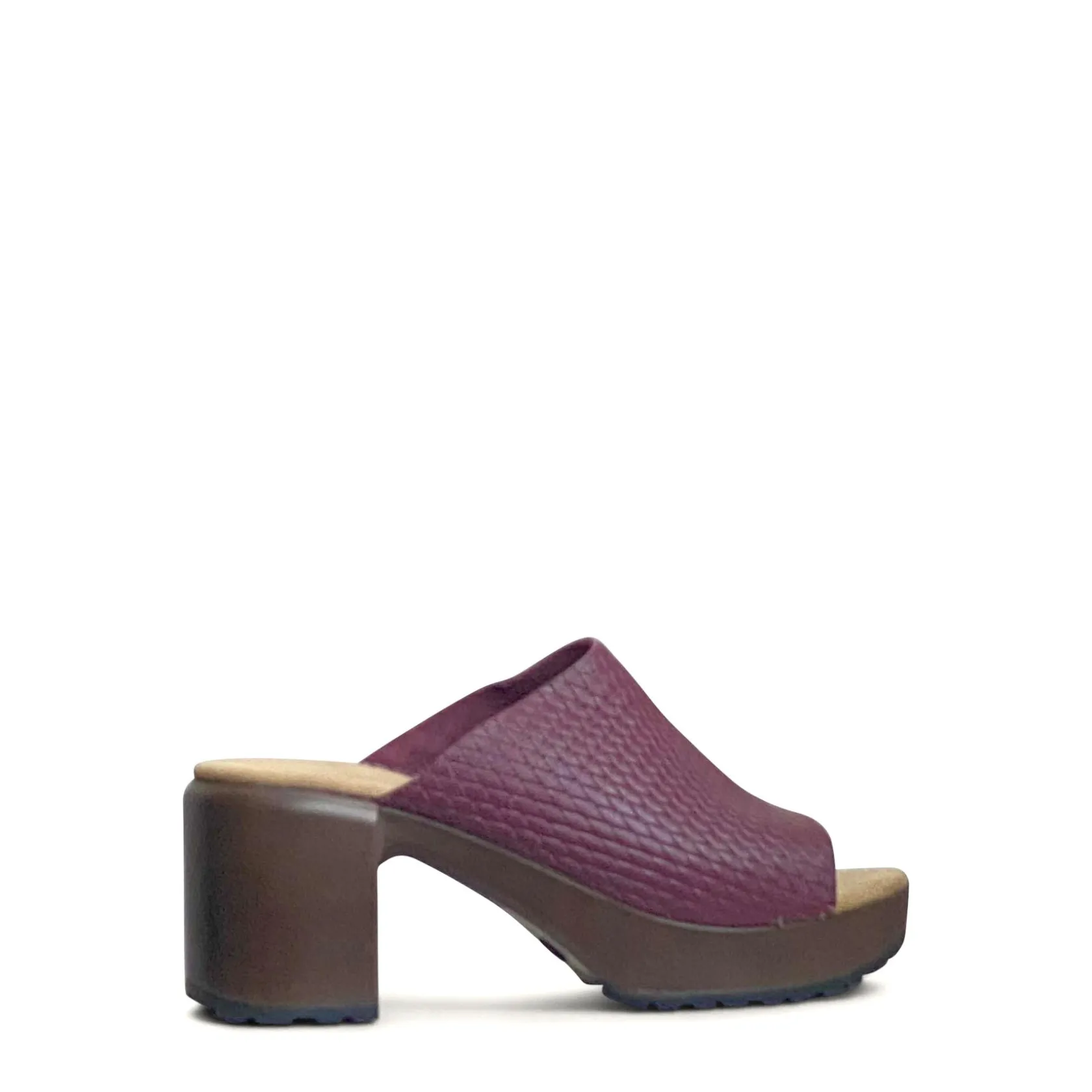Becka Chianti is slip-on mule clog in gorgeous plum-coloured embossed leather. The contrasting block heel and chunky platform sole give you height without sacrificing stability. With its cushioned, flexible sole, this mule clog is both comfortable and chic. Designed in Sweden and handcrafted in Portugal.