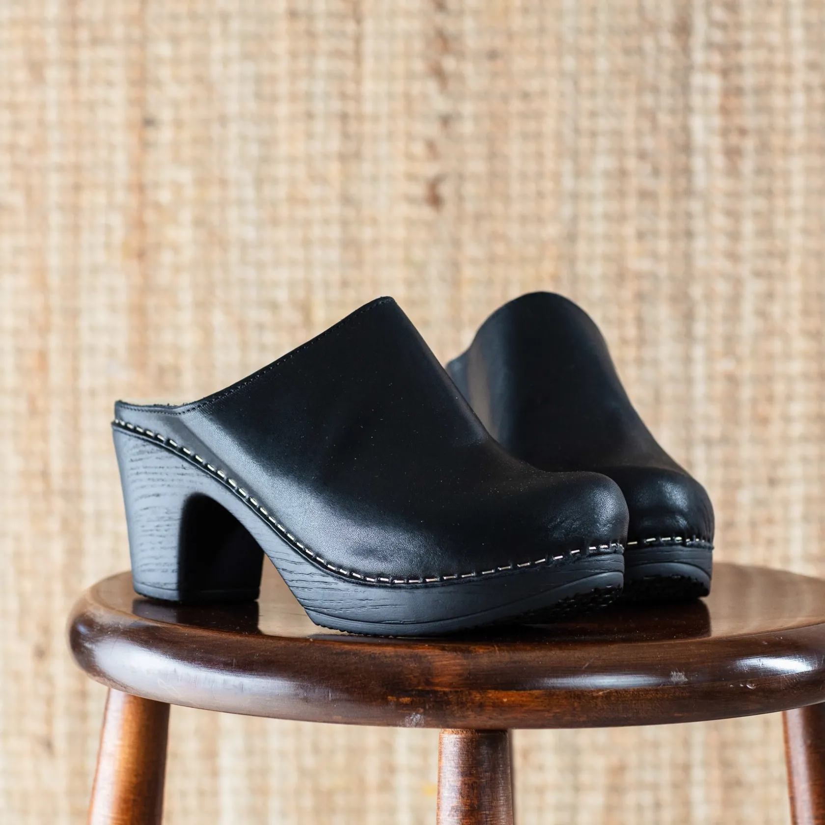 The Lisa high heeled clog is one of our all-time favourites. This classic clog in soft black leather is the perfect addition to your wardrobe this season. With its cushioned, flexible sole, it is both chic and easy to wear. The Lisa clog is designed in Sweden and handmade in Italy.