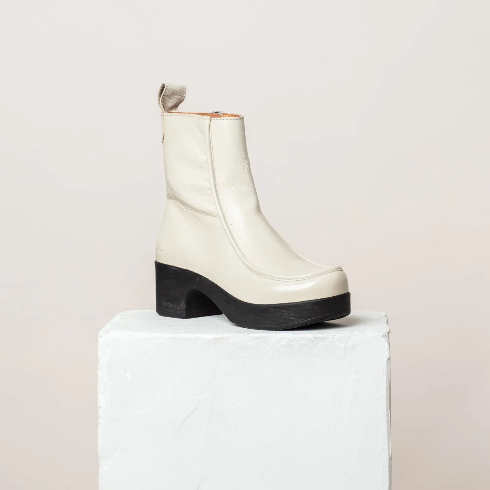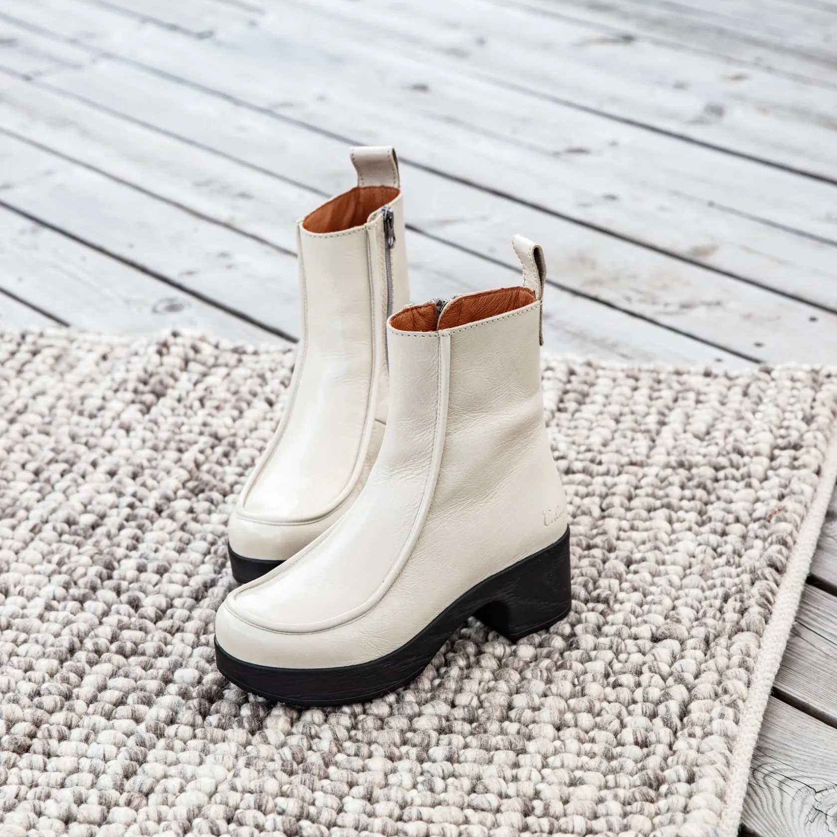 Meet your new go-to boot – The Viola. This creamy-white patent leather ankle boot is a real pearl! The boot has a loafer-style look with piped stitching and a low block heel. Handcrafted from supple, sustainably sourced leather, the Viola boot features leather pull tabs and a zipper for easy wear. With its sleek design, anatomical insole and flexible sole, Viola strikes the perfect balance between style and comfort.